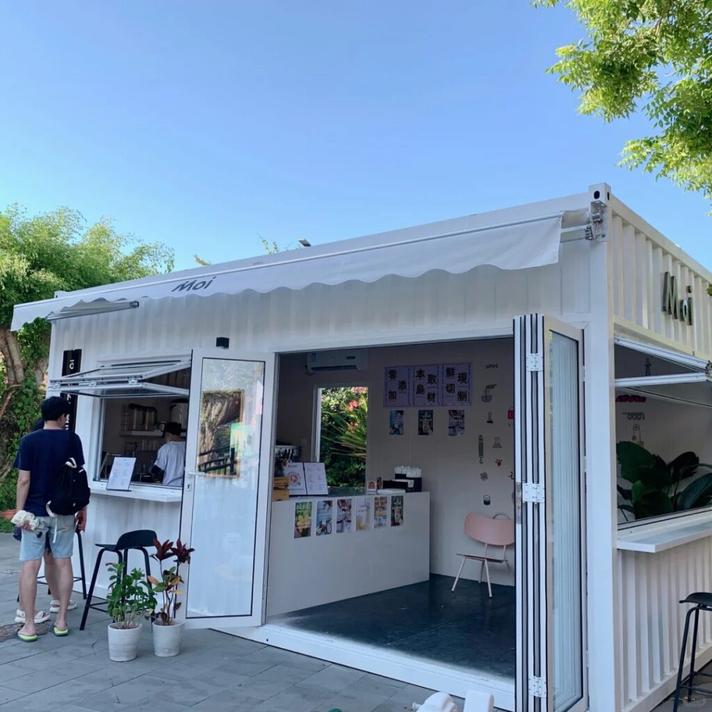 Store form: A pure white standard sea container is used as the main body, without excessive decoration or patterns, and only through the integration of pure white and natural environment, a simple beauty is displayed.